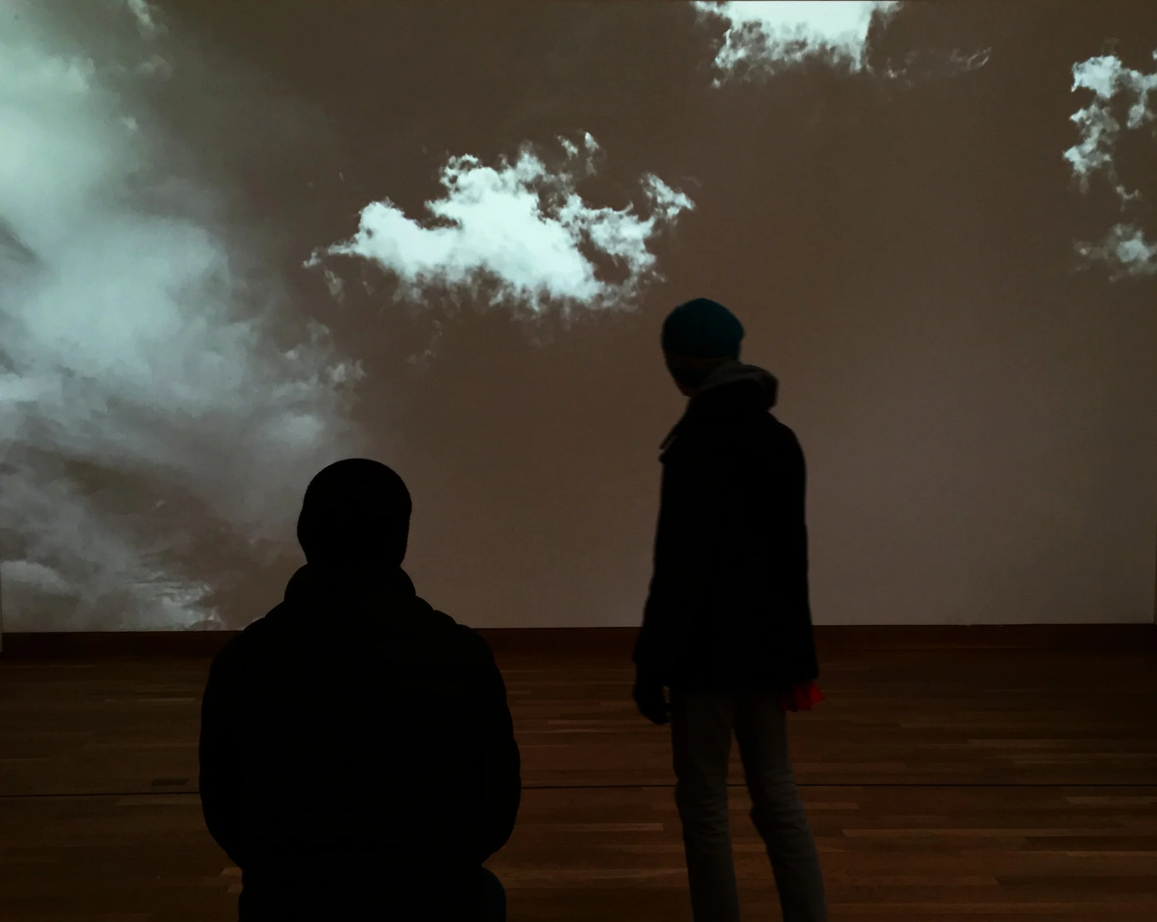 "Boston-based Yu-Wen Wu has produced a mesmerizing 40-minute video of cloud formations and random sounds ranging from quiet conversations to calliope music and a passing motorcycle. She shot her footage in sunlight and storms, and while standing amid a fast-rising ocean tide. Her images include classic cumulus, stratus, cirrus and lenticular clouds that dissolve and expand into one another, roiling and tumbling as she manipulates their speed and scale. Edited so the clouds rise and sink, fill the wall with turbulence or dissolve into puffs of nothingness, Wu’s “Tempo Frieze” is a compelling visual symphony." - Mary Abbe